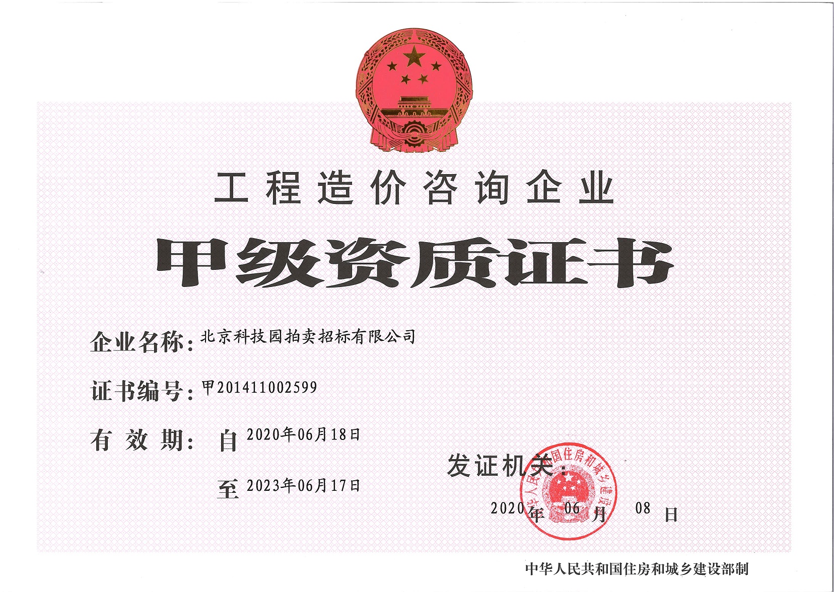 工程造價(jià)咨詢企業(yè)甲級(jí)資質(zhì)證書