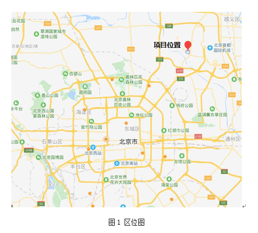 北京新國展二、三期項目位于北京市區(qū)的東北部,順義新城后沙峪組團東南部,距市區(qū)、城市副中心均約20公里(見圖1)。
